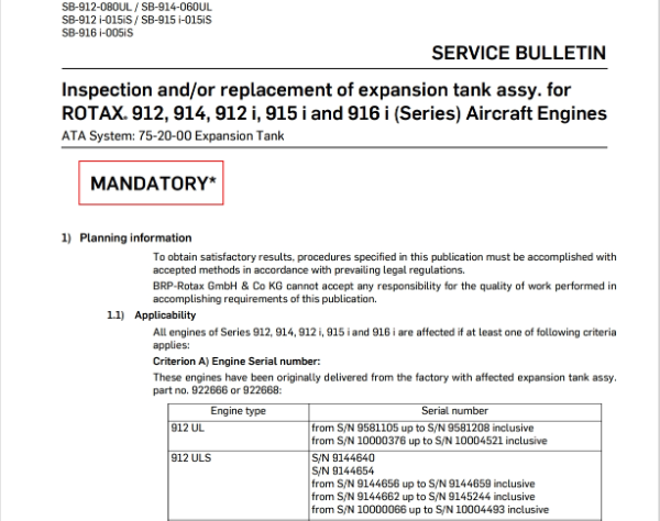 完整服务通报请至以下链接下载: https://www.rotax-owner.com/en/support-topmenu/service-bulletins Engine Type请选912 ULS Document Type 请选Service Bulletin 下载文件d07174.pdf |